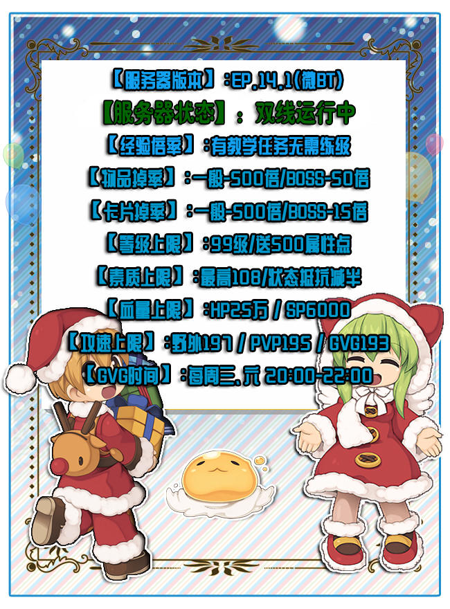 【物品掉率】:一般-500倍/BOSS-50倍