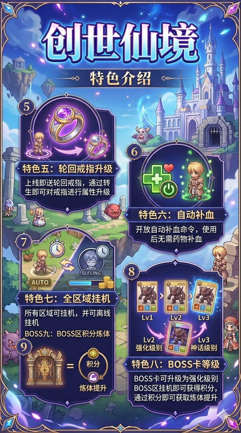 【创世仙境】三转中变,可学四转技能,特色背包装备,开放自动补